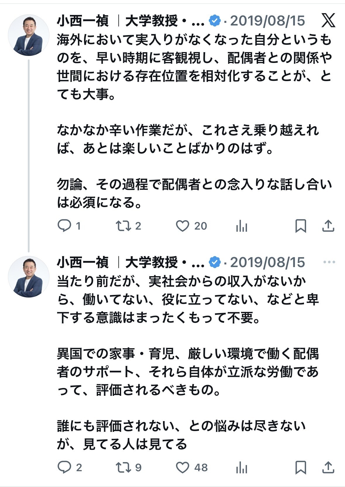 そうではない場合、アイデンティティーの喪失やら、ともすれば配偶者にへりくだらなければいけない自分の発見、自分が価値がない人間になったのではないかとの思い、、さまざまな感情が押し寄せ、無力感にさいなまれ、自らを見失うことにもなりかねない。